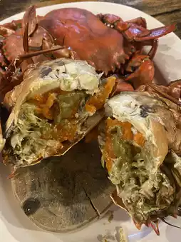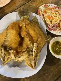 Today, we ordered the following dishes: 🦐 Salt-Baked Shrimp 🐠 Fried Sea Bass with Fish Sauce 🦀 Steamed Sea Crab with Eggs 🦪 Butter-Baked Scallops 🐙 Stir-fried Squid with Salted Eggs 🐟 Steamed Snakehead Fish with Soy Sauce ⏱️ 9:00 AM - 9:00 PM Open daily. Location: 📍 Mae Ramphueng Beach, Tapong Subdistrict, Mueang Rayong District, Rayong Province