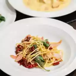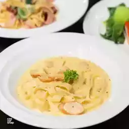Thai cuisine features a full menu of Thai favorites such as Pad Krapow, Red Curry/Green Curry, Tom Yum, Tom Kha Gai, and Crab Omelet. Pasta dishes are prepared to order, including pizza and sushi. There's also a jasmine rice or brown rice porridge station, served with side dishes and desserts. And most importantly, there's a food station where food is prepared freshly, one-by-one, ensuring you get hot and delicious food.