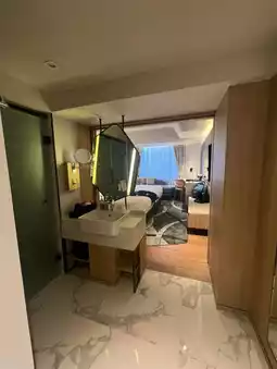 - The room is fairly soundproofed. It's a bit on the small side, but for me, it's perfectly soundproofed. It doesn't feel cramped. The lighting is good, the Wi-Fi is strong, and the hot water is satisfying. The bathroom amenities are from Deep Nature Spa.