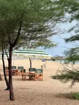 This is a beachfront cafe with a great atmosphere that many people recommend.