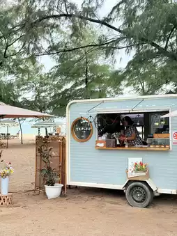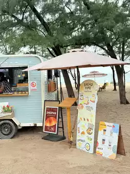 This food truck sits right on the beach, offering a chill atmosphere with a nice sea breeze and plenty of photo spots. It feels like you're camping by the sea.