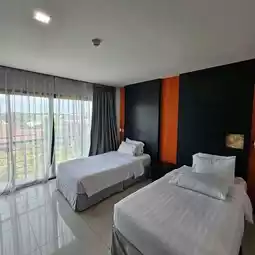 ⭐️Hub de Leaf @ Rayong Hotel in Rayong Province⭐️ This small, 3-star hotel offers modern, clean, and affordable rooms. The building features striking colors and bright, modern décor. Access is convenient even if you have a car, though the journey may be a bit steep. In-room amenities include free Wi-Fi, air conditioning, and drinking water. Breakfast is also available. It's also close to tourist attractions and shops.⭐️