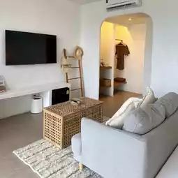🏨 There are several room types here, each spacious and beautifully decorated in white and brown tones, complete with woven wood furniture.