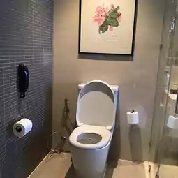 Everything is complete, including a microwave. The bathroom is very beautiful. The view from the bathroom looks out to the sea in the distance. It is very atmospheric. And most importantly, there is a walk-in closet.