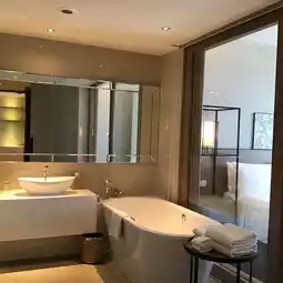 The room has a lot of usable space. It is really good. I am impressed. It is a hotel that is not on the beach. But you can see the sea from afar with yachts all over the sea. It is very beautiful.