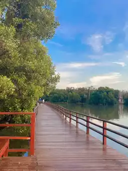 📸 Take chic photos, play with the lines with the bridge view, or pose cool with the natural view as a backdrop. It's fun all the time because the bridge is really long. There are two sides to choose from. On the Kho Po side, you will find a mangrove forest nature study bridge, a resting pavilion, and a view of the mangrove forest during high and low tide. On the seaside side, there are 4 bridges connecting to the viewpoint bridge and resting pavilions at various points. The mangrove forest bridge, Phra Chedi Klang Nam is another super hip location in Rayong city that is worth visiting. 🔰 : Mangrove forest bridge, Phra Chedi Klang Nam