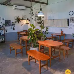 A newly opened cafe in Rayong is super cute. The atmosphere is like being transported to old Japan. The shop is decorated with a bit of vintage wood. The interior is decorated like a cute home cafe. The outside of the shop has many photo spots! TOTORO fans will scream because they have created a giant Totoro for you to snap pictures. It's so cute! ✨ The corners are so cute that you can take pictures from every angle. I guarantee that you'll get a lot of pictures to upload.