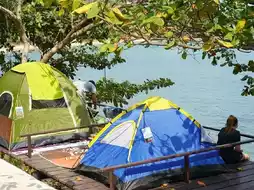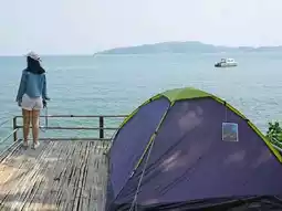 #Tourist attraction#Khao Laem Ya-Mu Ko Samet National Park has a sharp shape of land extending into the sea and is influenced by strong winds, causing small and large tree seedlings to be unable to grow. Only grass grows. Activities that tourists are interested in when visiting Khao Laem Ya include taking pictures with the long bridge, and there is a nature study trail. In addition, there are other facilities such as a camping ground and tents for rent in the park, rooms for rent, and shower rooms available.