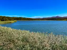 "Lake Kushu, the largest lake on Rebun Island, is a quiet spot that spreads out quietly in the western part of the island. It is surrounded by gentle hills and a primeval flower garden, and the lake reflects the sky, creating a fantastic view, especially in the mornings and evenings. There are also many lotus plants and alpine plants, and a promenade perfect for a stroll is also provided. It is also recommended for bird watching and photography.