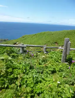 These weren't flashy flowers like roses, but rather the charming and natural blooms unique to alpine plants. The weather was fantastic, and the sea looked stunning. Especially at Cape Sukoton, the contrast between the blue sea and the green landscape was breathtaking.