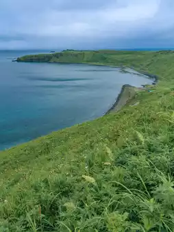 The island is surrounded by steep cliffs and the vast expanse of sea. The clear blue Sea of Japan reflects the distant silhouette of Rishiri Fuji. At sunrise and sunset, the sea and sky intertwine into a long, golden-red scroll. Cape Sumi, named for its crystal-clear blue waters, offers a breathtaking view.