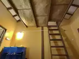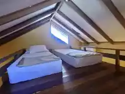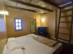 The relatively spacious room can accommodate four to six people at a time. There are two single mattresses in the loft. This room has an air conditioner and does not have other amenities such as towels, soap, iron, refrigerator. So for those who want to stay here, make sure you bring enough toiletries. The resort also has a cafe that provides delicious food.