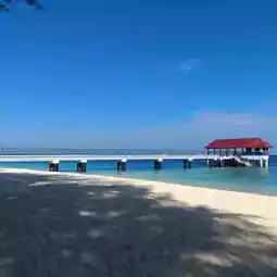 The beach is covered with soft white sand. Coral and fish can be seen just a few metres from the beach.