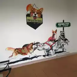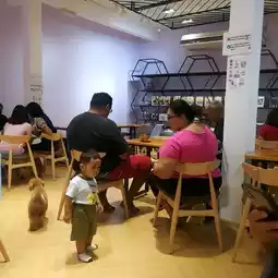 Located near New World, the dogs are very cute and well-behaved. The dogs are very enthusiastic and children are not afraid of them. The environment is comfortable and the food is OK. I especially like the banana waffles, which are coated with chocolate and oatmeal. They are not too sweet and delicious. 😋😋😋😋