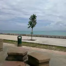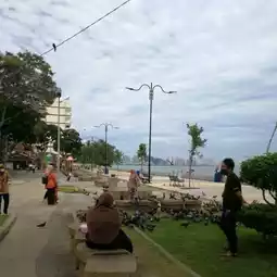 There is a playground facing the sea, 😁😁😁 The wind blows over and is very comfortable 😁😁😁😁, the view is beautiful 😍😍😍😍, tired of playing, there are stone chairs next to you can sit and rest😜😜😜, the endless sea view looks really comfortable, here there are many white pigeons in groups of very spectacular holiday