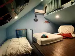 The mattress in the loft is suitable for the whole family to sleep together. The bathroom design is disappointing. Compared with a double room.