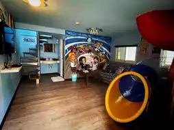 For the family room, we had the One Piece theme room. The slide was poorly designed and the entrance was too shaky. Some children will be scared and easily get hurt, and the angle in the middle of the slide is too flat, so they can get stuck easily. The non-slip slide becomes a bomb shelter for children.