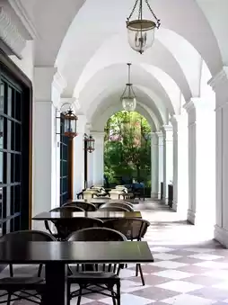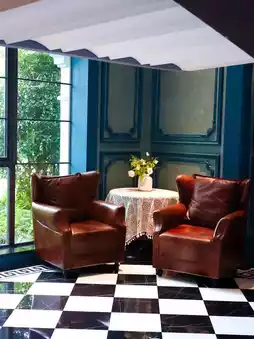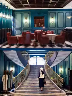 This place is perfect for taking photos! Especially the connection between the lobby and the second floor, every corner is retro, with blue bricks and gray tiles, arched windows, and old cars and rickshaws. We took a lot of beautiful photos, which are very story-like.