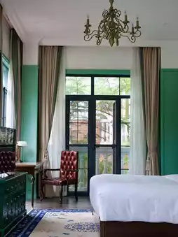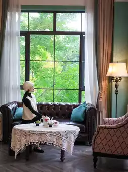The room windows are all green plants, and I love the decoration colors, mosaic tiles, and gold-plated facilities, which are very artistic. There is also a large balcony where you can see the courtyard view, which makes me feel great!
