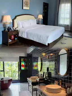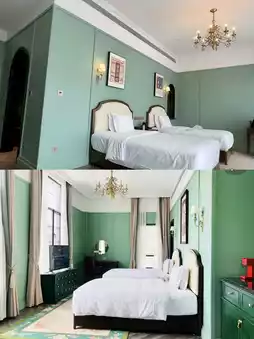 Because it is so beautiful, the whole environment is very comfortable, and I like the decoration very much. There are eight courtyard-style courtyards and three floors. As soon as you enter the lobby, a spiral staircase catches your eye. The black and white checkered floor matches the surroundings very well. The sofas are all leather sofas. There is a cheongsam area on the first floor. You can wear it for free to take pictures when staying in the hotel. We chose a double bed in the room. For two girls, a 1.35-meter bed is enough for one person to sleep on. The decoration style of the room also matches the window very well. It is very clean and hygienic. The hotel was built and opened in 2019. In fact, there is no smell. The bathroom is very large, with dry and wet separation, and an independent bathtub. It is very experiential. Even the wall color coming out of the corridor is very designed. It is said to be the characteristic decoration style of western Sichuan.