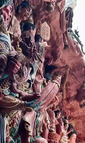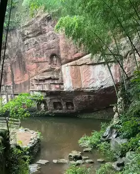 Not only is the natural scenery here stunning, but the cultural heritage is also very rich. There are 161 inscriptions by famous historical figures such as Li Bai and Su Shi, as well as 68 niches with more than 2,400 cliff carvings, each telling a story of history📜 The most famous is the "Fish Calling Pond." It is said that when Su Dongpo was studying here, he met his teacher’s daughter Wang Fu because she named this pond "Fish Calling Pond," which led to a beautiful story.