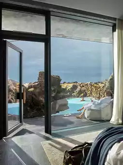 A renowned luxury hotel in Iceland with a large private Blue Lagoon area, rooms are right next to the Blue Lagoon spa, relax while enjoying glacier views