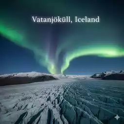 วิวธารน้ำแข็ง Vatnajökull พร้อมแสงเหนือพาดผ่านท้องฟ้า