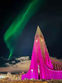 The Aurora in Reykjavik is a breathtaking light show painted across the Arctic sky. Its colors form a natural spectrum that shifts and blends like magic. The most common shade is bright green, glowing softly as it moves across the night. Sometimes, the lights turn pink or purple at the edges, adding a dreamy touch. On rare nights, shades of red, yellow, or even blue appear, creating a full rainbow of colors in the darkness. These colors come from different gases in the atmosphere—oxygen makes green and red, while nitrogen adds pink and purple tones. Under clear skies and away from city lights, you can see the aurora’s ribbons and curtains dance slowly, reflecting on snow and water. It’s a gentle reminder of how powerful and beautiful nature can be, turning Reykjavik’s cold nights into moments of pure wonder.