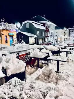 Reykjavík in winter feels like stepping into a cozy snow globe — a mix of colorful houses, twinkling lights, and snow-covered streets framed by icy mountains and the sea. It’s calm, enchanting, and full of warmth despite the chill.