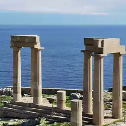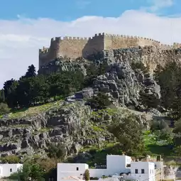 Perched dramatically atop a 116-meter-high cliff overlooking the Aegean Sea, the Acropolis of Lindos is one of the most striking ancient sites in Greece. Located on the island of Rhodes, this citadel seamlessly blends natural beauty with human achievement, offering breathtaking views of the coastline and the whitewashed village of Lindos below. Its layered history includes contributions from the ancient Greeks, Romans, Byzantines, and Knights of St. John.