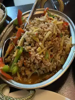 Finally, we ordered green curry chicken, paired with rice for a perfect combination. We opted for medium spice, and the harmony between the curry and chicken flavors was exquisite, leaving us savoring every bite.