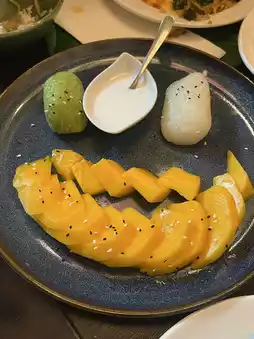For dessert, we had mango sticky rice with coconut milk. The sweetness of the mango was just right, blending beautifully with the creamy texture of the sticky rice, providing a perfect ending to the meal.