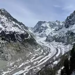 Mer de Glace is a glacier located in the Mont Blanc mountain range and is one of the largest glaciers in France. It is about 7 kilometers long and is a beautiful tourist attraction.