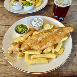 ✨ Signature crispy beer-battered fish & chips (pair with London Pride ale or a fresh G&T).