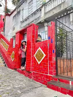 The Selarón Steps (Portuguese: Escadaria Selarón) are a world-famous staircase located in Rio de Janeiro, Brazil, from Joaquim Silva Street to Martín Street, spanning the Lapa and Santa Teresa neighborhoods. The Selron Stairs have a total of 215 steps, are 125 meters long, and use more than 2,000 tiles from more than 60 countries around the world.