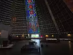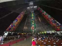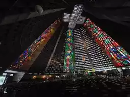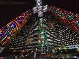 The ⭐️Rio de Janeiro Cathedral⭐️, officially known as Catedral Metropolitana de São Sebastião do Rio de Janeiro, is a pyramid-shaped church located in the Lapa district. Designed by architect Edgar de Oliveira da Fonseca, the cathedral was inspired by the pyramids of Mexico. Inside, you'll find stunning stained glass windows that create a truly beautiful and serene atmosphere.