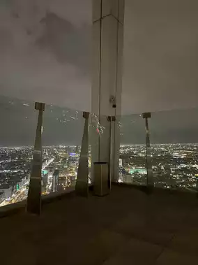 During my solo trip to Riyadh, I made sure to visit the Al Faisaliah Tower’s observation deck, and it did not disappoint! Despite the rainy weather, the views were still incredible. The tower is one of Riyadh’s most iconic landmarks, and from the high vantage point, you can see the entire city sprawling out below. The nighttime view, in particular, was breathtaking—Riyadh's lights sparkling against the dark sky was a sight I won’t forget.
