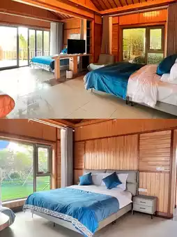 In summer, you can also bring your own camping equipment to camp on the lawn and watch the sunrise. When the weather is cold, sleep in the small villa