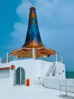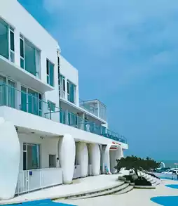 An amazing island fantasy trip, with pure white hotels and a white ice block-shaped Shangshui Coffee shop, full of the romantic atmosphere of Santorini.