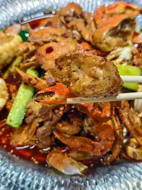 Spicy crab, salt and pepper pipi shrimp, fresh pepper bass, grilled lamb chops, seafood dumpling soup... The portions are all good!
