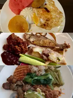 The hotel's food is also a highlight. The Feast buffet restaurant offers a global buffet with a wide variety of fresh seafood and exquisite desserts, every bite is a pleasure. The Lu cuisine at Yuechu Chinese Restaurant uses fresh ingredients and is cooked deliciously, allowing me to experience the authentic Shandong flavor. Smoki MOTO Korean Restaurant's Korean cuisine and buffet barbecue are also unique, and the lively dining atmosphere is perfect for sharing with friends.