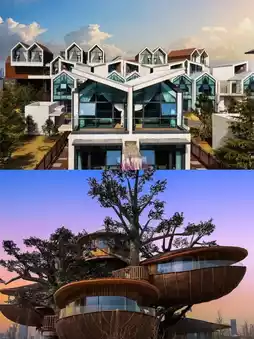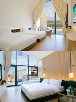 - Family rooms: Options include city-view, sea-view, wooden cottages, and treehouses.