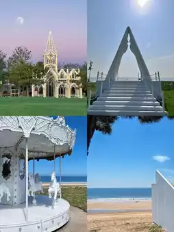 2️⃣ Taohua Island: It's not that Jeju Island isn't worth it🏖, but this place offers better value! White buildings contrast beautifully with the blue sky and sea, making it super photogenic📸. For those wanting to photograph the red lighthouse, head directly to Xingdao Fantasy Park.
