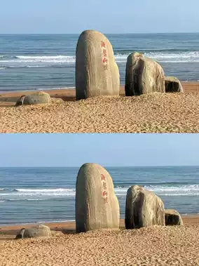 - Wanpingkou Scenic Area: Rizhao’s “city living room,” with fine sand and clear water, perfect for walking, taking photos, and playing in the sand. Rent a multi-person bike to cruise along the coastal road, chat while enjoying the sea breeze, super comfortable~ 😎 (Free entry, some activities charge fees)