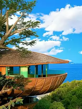 The treehouse is wrapped in vines like something out of a fairytale 🌿 Open the window to a dazzling blue sea, wake up to the sound of waves in the morning, and watch the sunset turn the ocean into a tangerine hue—your phone storage will run out from all the photos!