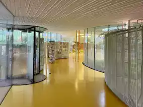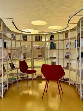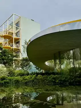 Under the curved concrete ceiling, there are spaces for residents' daily use such as a gym, children's activity room, and library. The architectural form is very unique, but the materials used are ordinary and understated.
