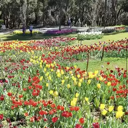 Review: For families on a #perthonbudget, Araluen offers tremendous value through its free-to-explore natural attractions. Beyond the flowerbeds, the park is carved into a steep-sided valley, featuring stunning, year-round running water features and waterfalls along Stinton Creek. Following the winding paths and rustic staircases up and down the terraced gardens provides great free entertainment and a gentle workout. Kids (and adults!) love exploring the many bridges, creeks, and the 44 hectares of native bushland that surrounds the developed gardens. Skip the $10 train ride, use the well-maintained walking paths, and spend that money on a hot coffee at Chalet Healy (or better yet, bring your own thermos!).