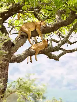 Home to the famous "tree-climbing lions"! Pink flamingo flocks by the lake look like drifting clouds.