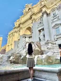 Famous from the movie *Roman Holiday*, the Trevi Fountain was a must-visit for me. I tossed a coin into the fountain and made a wish. 💫 Despite the constant crowd of tourists, the harmony of the white marble sculptures and the clear water was breathtaking. The fountain is especially magical at night when it’s illuminated.