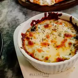The special thing about #BaanChefNa pizza is that the dough is thin, the toppings are thick, the cheese is oozing, and it has a nice aroma of firewood. But aside from pizza, the burgers are also good, served in very large pieces, the bread is soft and fragrant with butter. Baked spinach with cheese is another menu that you must try. They put in a lot of cheese.